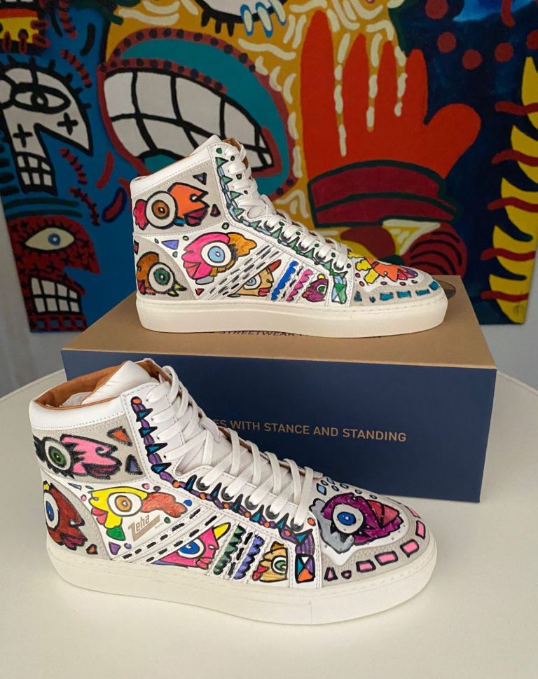 Die Basis bildet ein Modell einer wiederbelebten Traditionsmarke – ein Stück Sneaker-Geschichte, neu interpretiert und künstlerisch veredelt. Diese Kombination aus Heritage und moderner Kunst macht jedes Paar zu etwas ganz Besonderem.